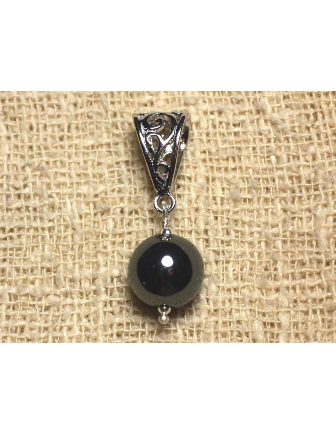 Pendente in pietra semipreziosa Ematite Pietra semipreziosa naturale Colore metallo nero Dimensioni perla tonda 12 mm Perlina in filigrana in qualità rodiata Metallo argentato Dimensioni 11 x 6 mm