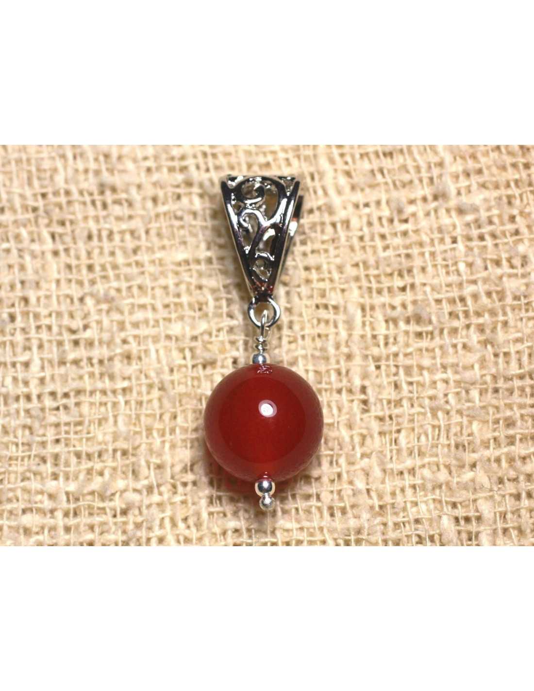 Pendente in pietra semipreziosa Corniola Pietra semipreziosa naturale Colore Rosso, arancione, trasparente Perla rotonda Dimensioni 12 mm Perla in filigrana in metallo argentato di qualità rodiato Dimensioni 11 x 6 mm Pendente venduto con collana in organza o cotone cerato Personalizzazione possibile con pietre e colori la tua scelta