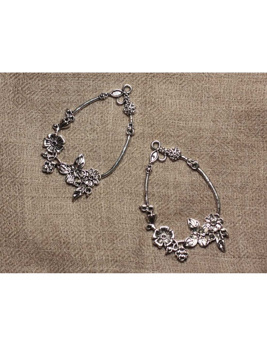 1pc - Ciondolo con ciondolo in metallo placcato argento con fiori in rodio 55 mm
