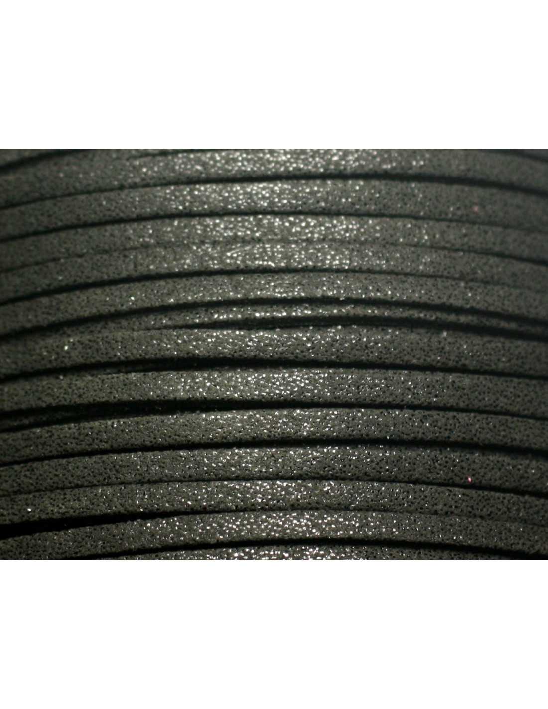 5 metri - Cordino per cordino in pelle scamosciata 3x1,5 mm nero glitter scintillante - 8741140022997
