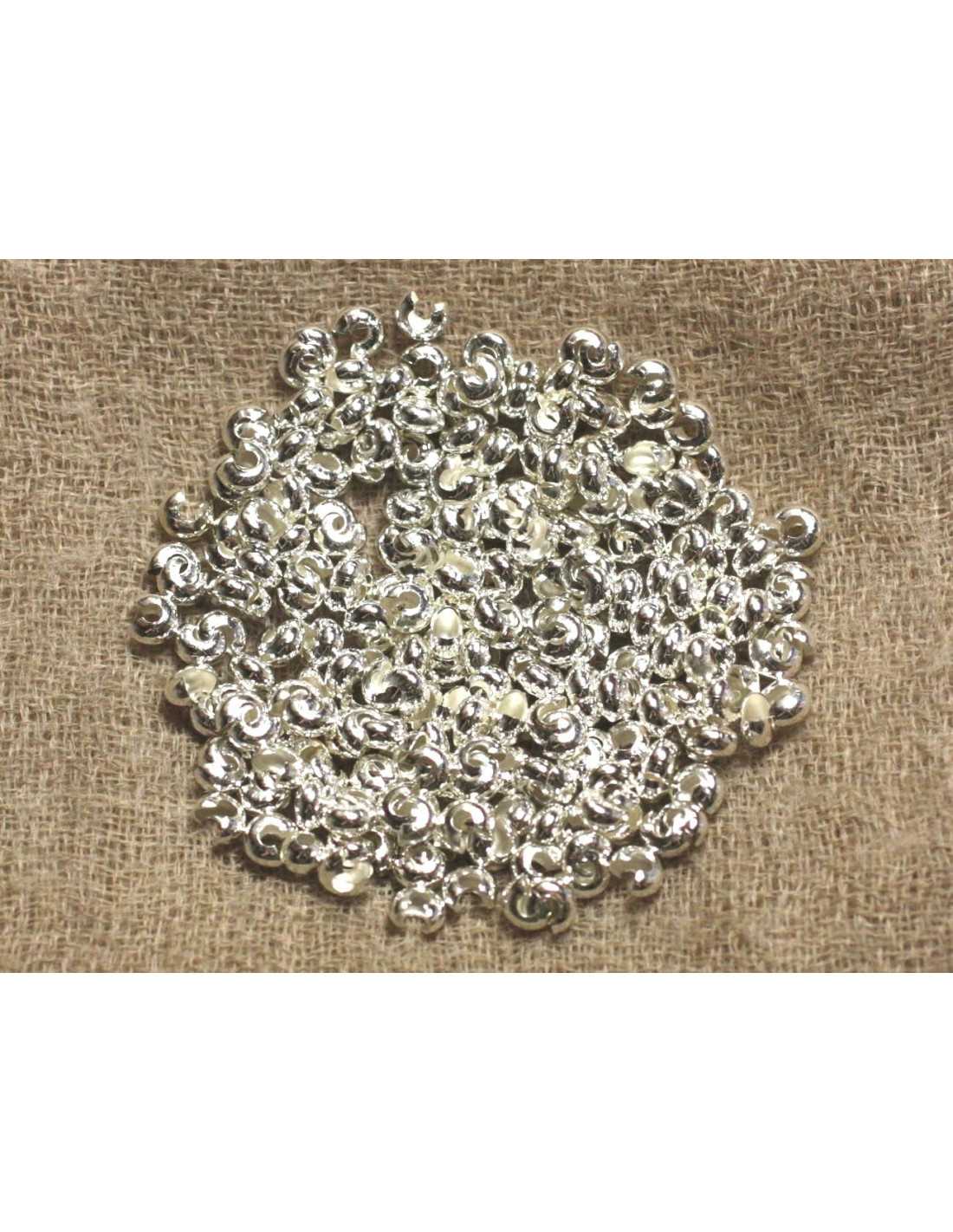 100pc - Copri perline a crimpare 4x4mm di qualità in metallo argentato