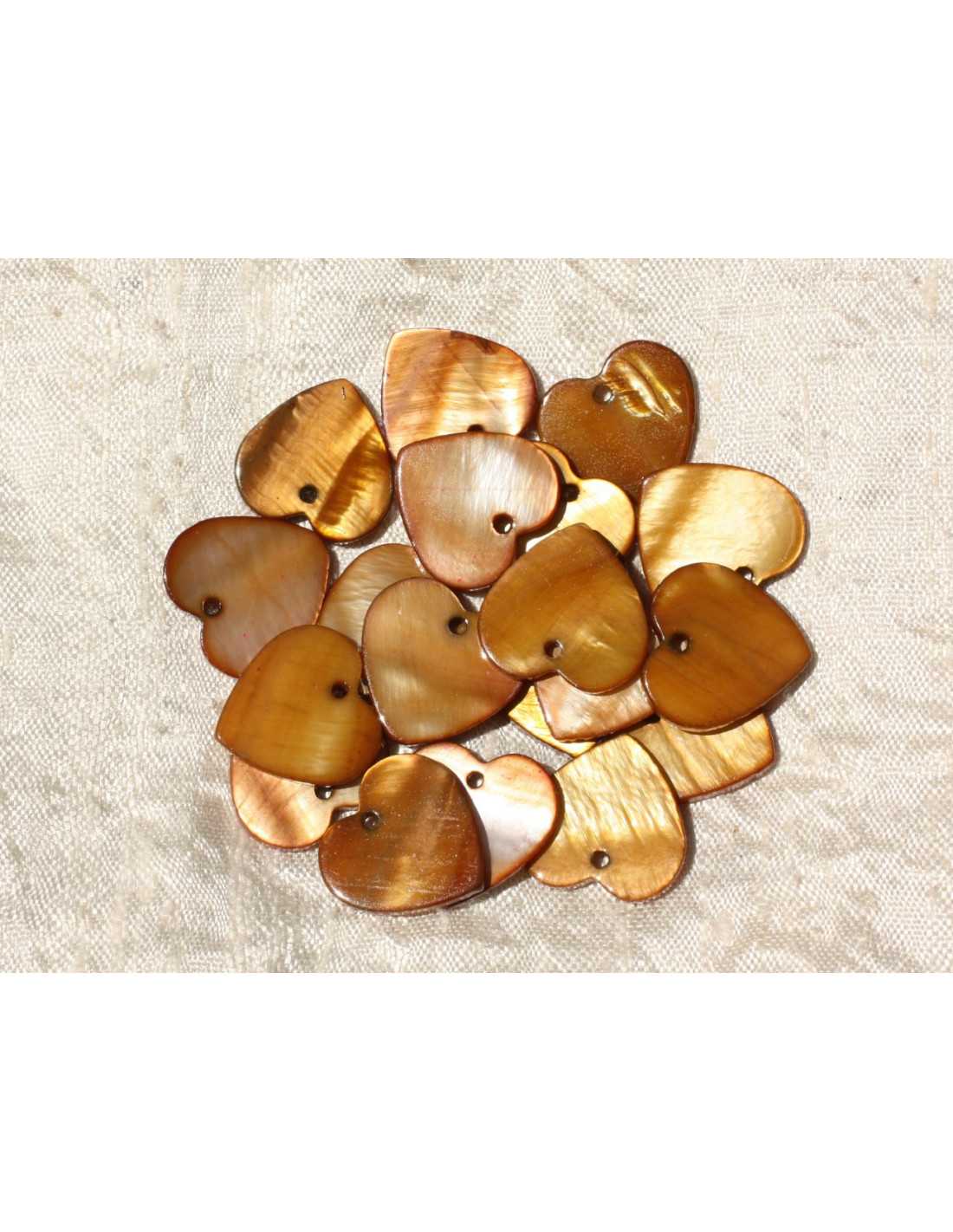 10pc - Ciondoli in madreperla Charms Hearts 18mm Golden Brown 4558550017130