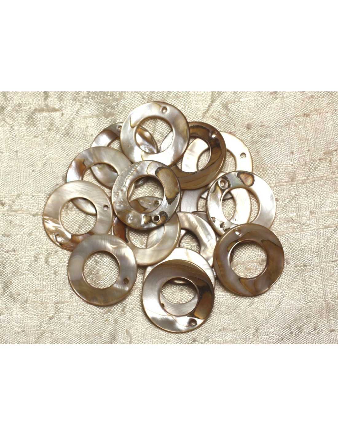 10pz - Pendenti con ciondoli di perle Cerchi in madreperla 25mm Ecru