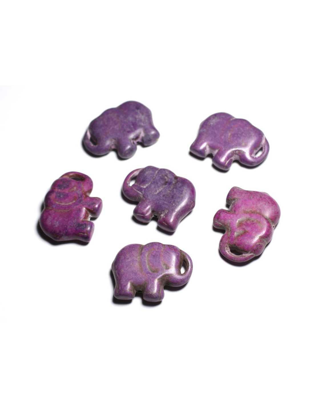 1pc - Perlina pendente in pietra turchese sintetica grande - Elefante 40 mm viola