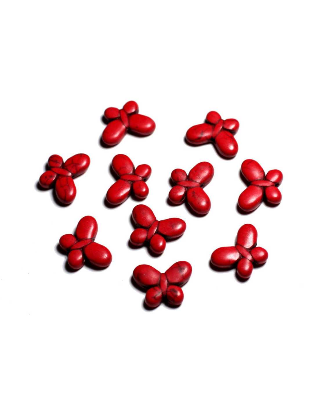 Filo 39 cm - Perline di pietra turchese sintetico Farfalle 20 mm Turchese sintetico ricostituito Colore Rosso Forma Farfalle forate dall'alto verso il basso, in larghezza Dimensioni Lunghezza 20 mm x Larghezza 15 mm x Spessore 5 mm circa Dimensione foratura 1 mm circa Venduto da un filo di 39 cm Circa 37 perline per filo