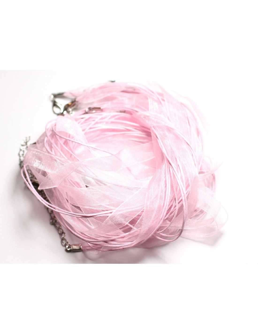 10pz - Collane in organza e cotone 47 cm Rosa chiaro - 4558550005953