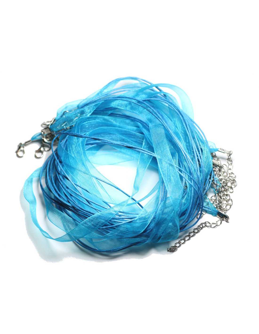100pc - Collane Collane 47cm Tessuto in cotone e organza 10mm Blu turchese pavone