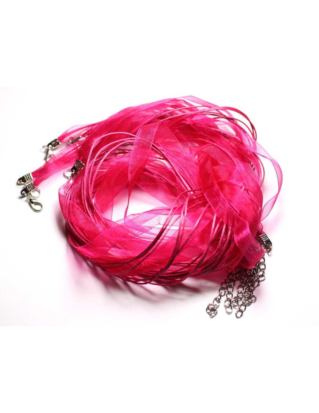 100pz - Collane 47cm Tessuto in cotone e organza 10mm Fucsia Pink