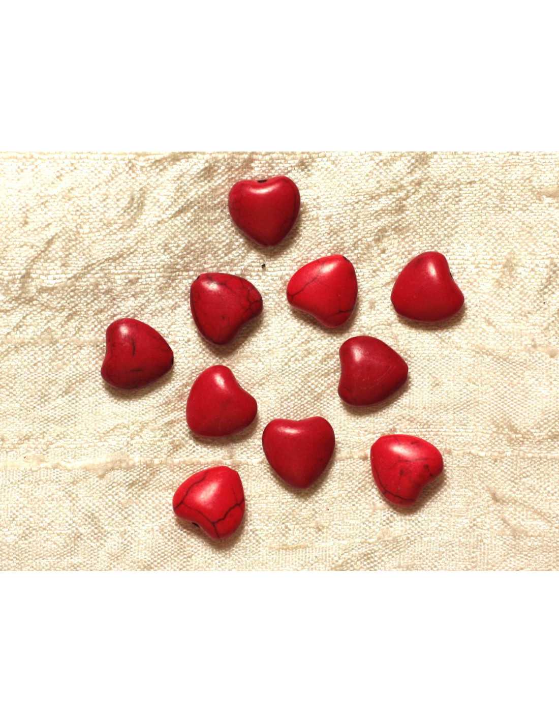 Filo 39 cm - Perline di pietra turchese Cuori di sintesi ricostituiti 11 mm Pietra sintetica Colore Rosso Forma Cuori forati longitudinalmente Dimensioni Lunghezza Larghezza 11 mm x Spessore 5 mm circa Dimensioni di foratura circa 1 mm Venduto da un filo di 39 cm circa 34 perline per filo
