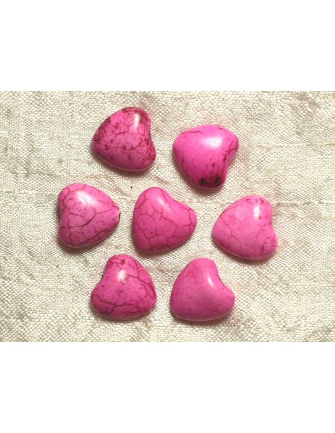 10pc - Perline turchesi sintetiche - Cuori rosa neon da 15 mm