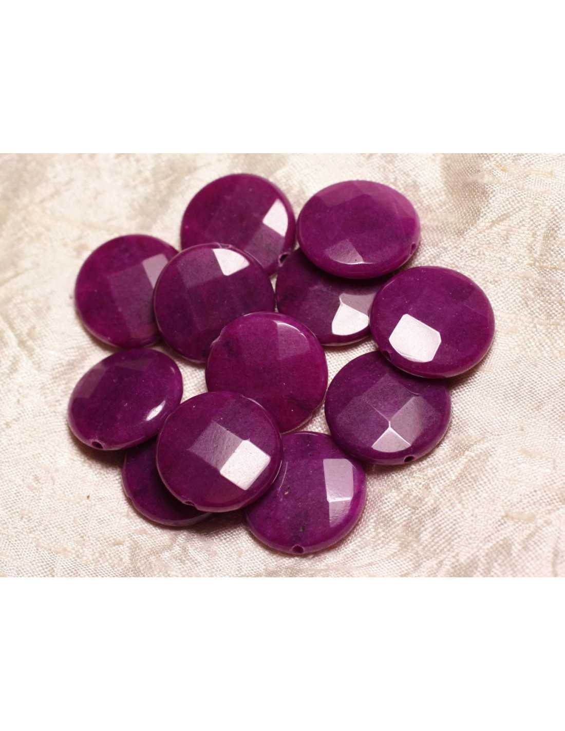 Filo 39 cm - Grandi perline di pietra di giada Palette sfaccettate 25 mm Pietra semipreziosa naturale colorata Colore Viola Magenta Forma Palette sfaccettate Dimensioni Diametro 25 mm x Spessore 6 mm circa Dimensione foratura 1,5 mm circa Venduto da filo di 39 cm Circa 15 perline per filo