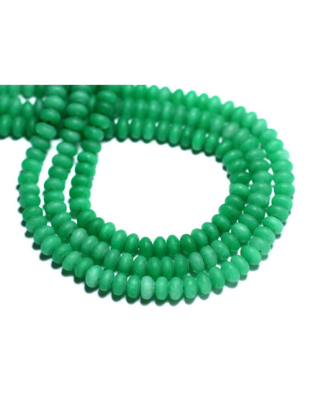 Filo 39 cm 112 pz circa - Perline di pietra - Rondelle di giada 5x3 mm Verde impero satinato opaco