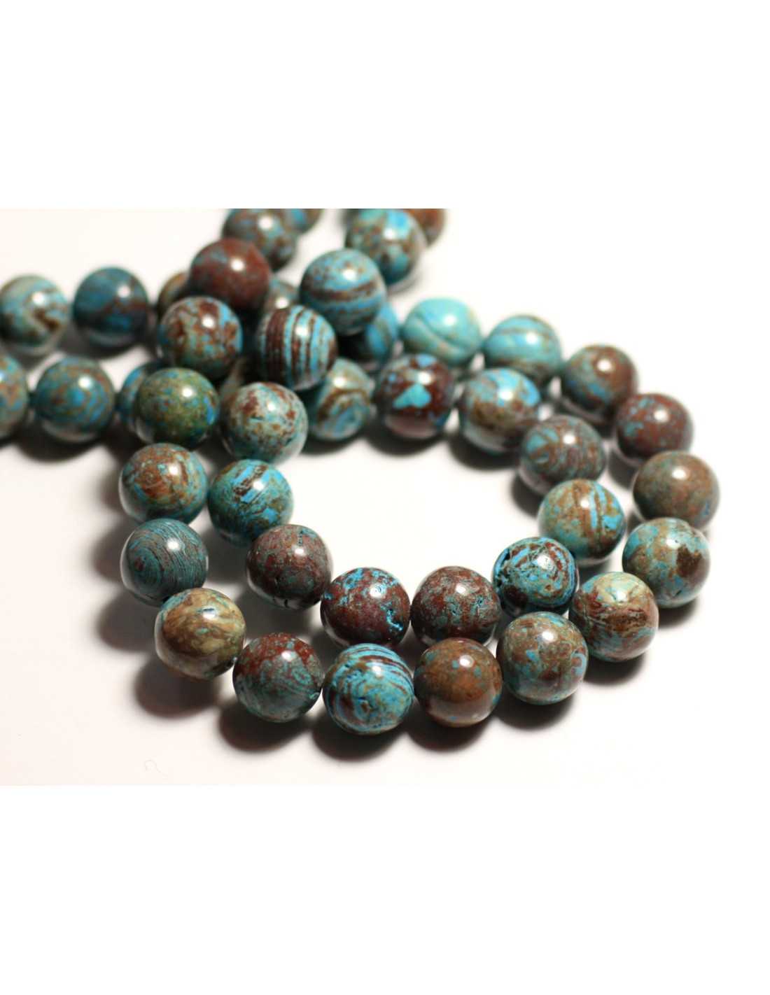 Filo 39 cm - Perline di pietra di diaspro Paesaggio autunnale Pietra semipreziosa colorata naturale Colore blu turchese, marrone Sfera, forma rotonda Dimensioni circa 4 mm Dimensione foratura circa 0,8 mm Venduto con filo da 39 cm Circa 93 perline per filo