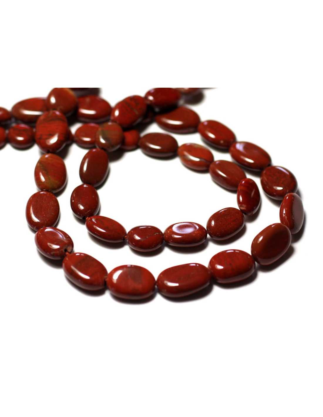 Filo 36 cm 31-39 pz circa - Perline di pietra - Olive ovali diaspro rosso 7-12 mm - 8741140012721