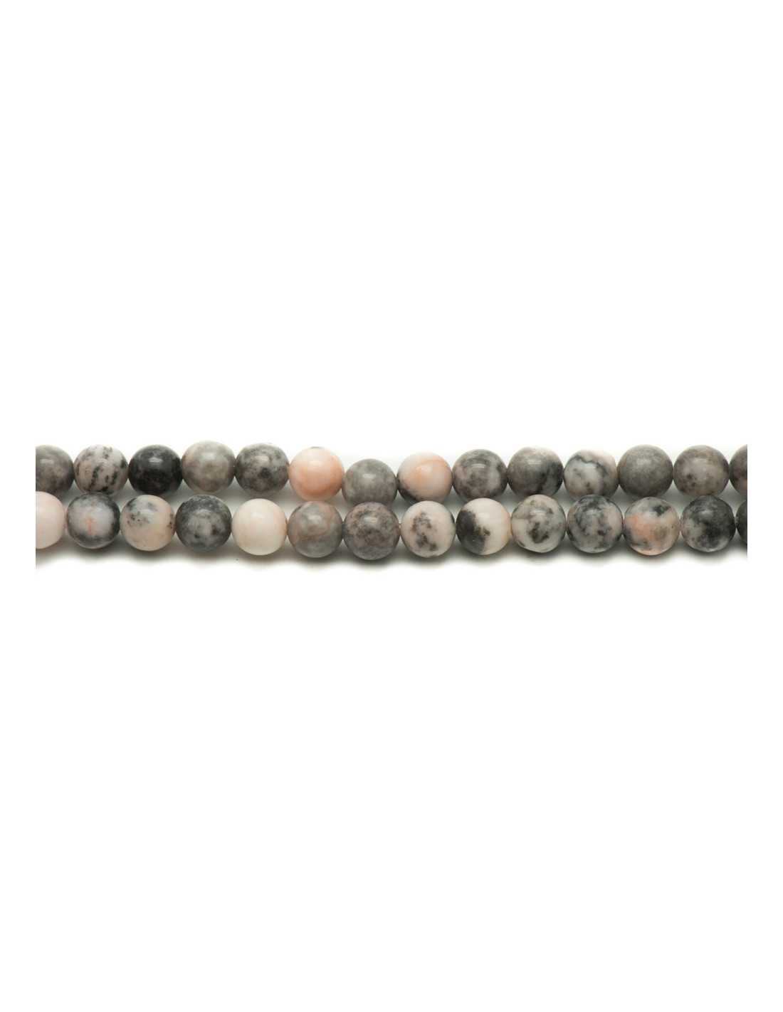 Filo 39 cm circa 46 pz - Perline di pietra - Palline di diaspro grigio e rosa da 8 mm