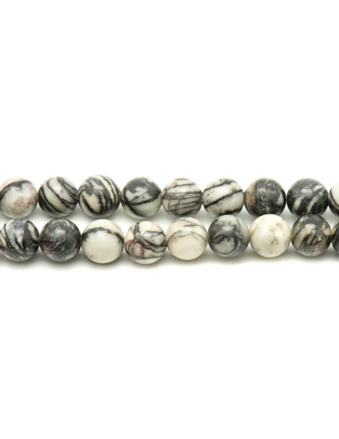 Filo 39 cm - Zebra Jasper Stone Beads Pietra semipreziosa naturale Colore Bianco, grigio, nero Forma sfere, tondo Dimensioni circa 8 mm Dimensione foratura circa 1 mm Venduto con filo da 39 cm Circa 46 perle per filo