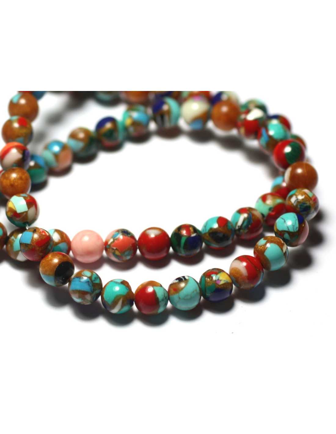 Filo 39 cm circa 63 pz - Perline di pietra - Palline di diaspro sedimentarie 6 mm Multicolore Blu Rosso