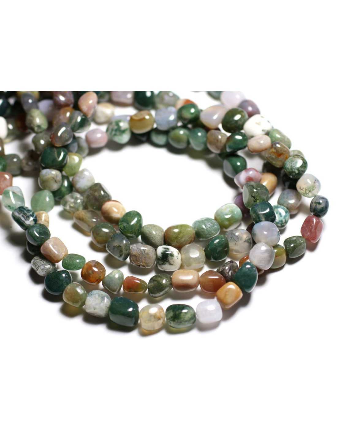 Filo 39 cm - Perline in pietra di diaspro fantasia multicolore Pietra semipreziosa naturale Colore bianco, verde, arancione Forma a pepite Dimensioni 8-10 mm circa Dimensione foratura circa 1 mm Venduto con filo da 39 cm Circa 43 perle per filo