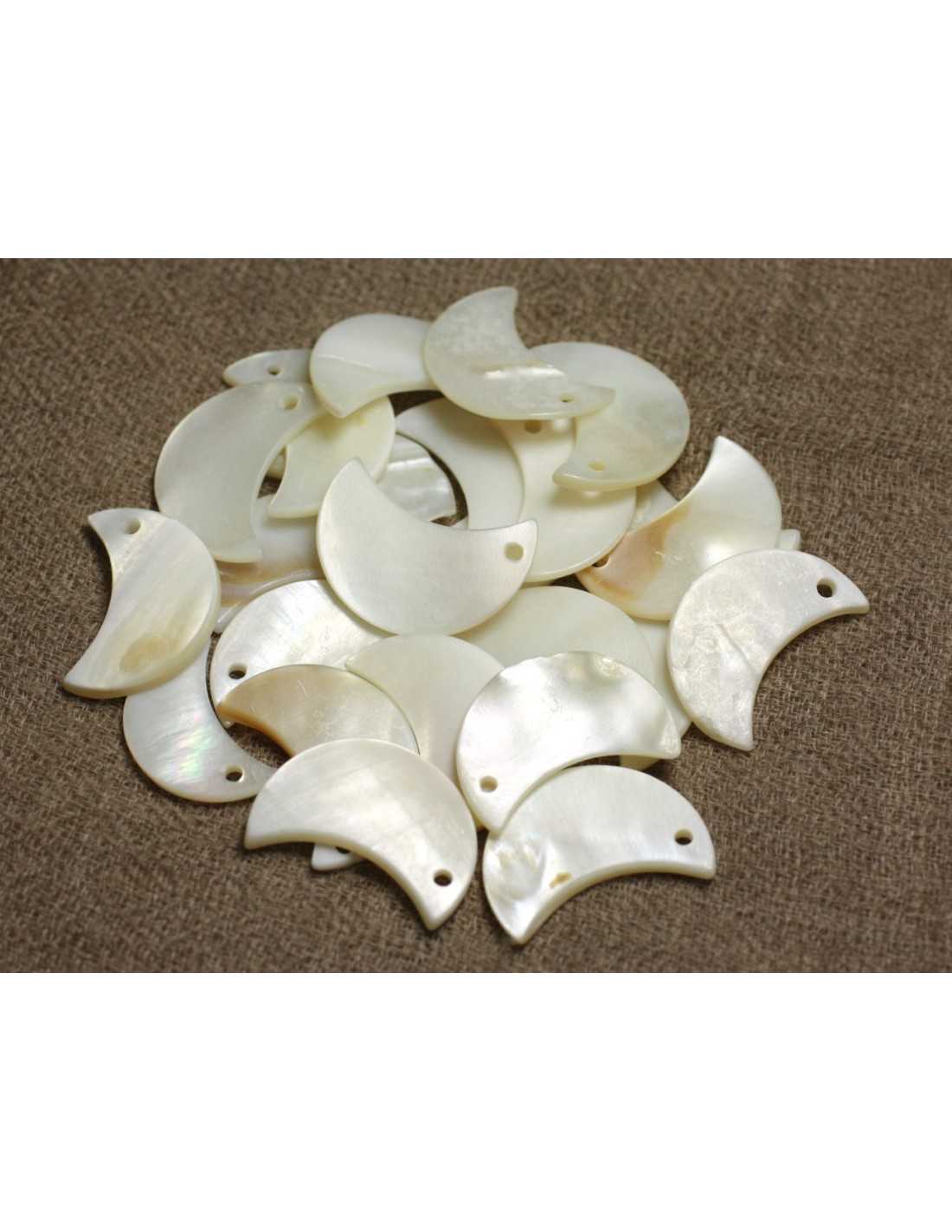 5pc - Pendenti Charms Perline Madreperla Bianca Lune 22mm