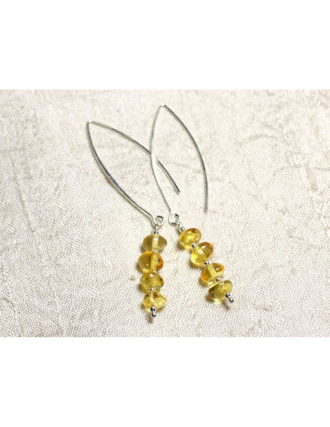 Orecchini in argento 925 Ganci lunghi e Ambra Ambra naturale Miele Colore giallo chiaro, trasparente Perline Rondelle 6-7mm circa Perline distanziatori in argento 925 Orecchini lunghi in argento 925/1000 Dimensioni circa 36x15mm Possono essere realizzati con altre pietre e primer (ganci semplici, traversine, clip ...)