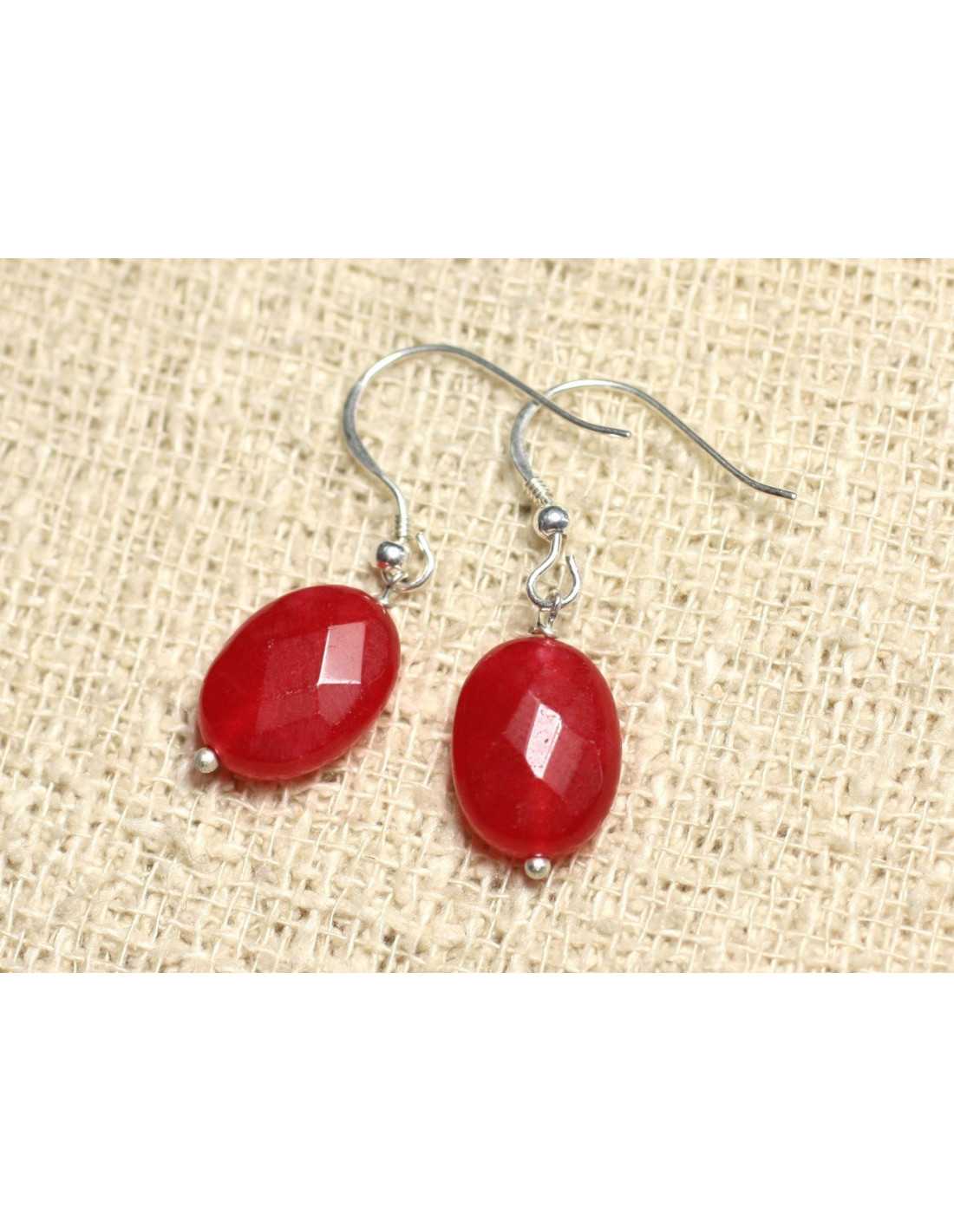 Orecchini in argento 925 e pietra - Ovale sfaccettato in giada rossa 14 mm