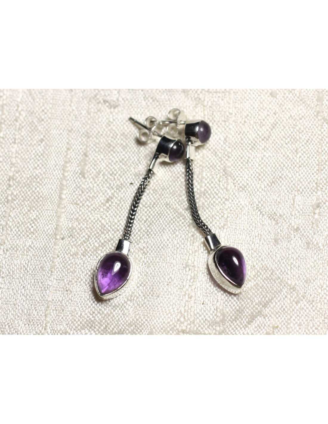 BO240 - Orecchini a catena pendenti da 45 mm in argento sterling 925 e pietra ametista