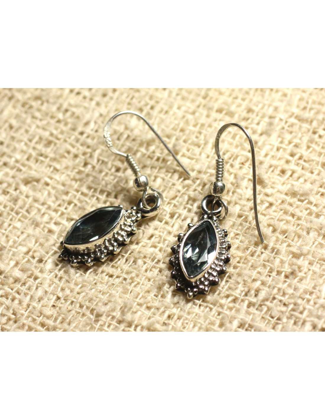 BO207 - Orecchini in argento sterling 925 - Marquise sfaccettato topazio blu 10x5mm