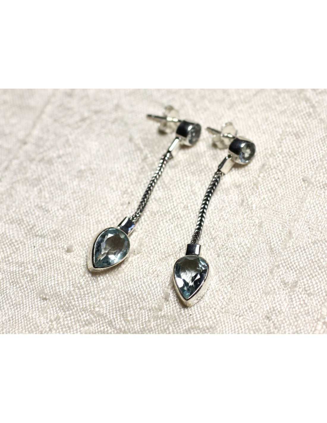 BO240 - Orecchini a catena da 45 mm in argento 925 e topazio azzurro