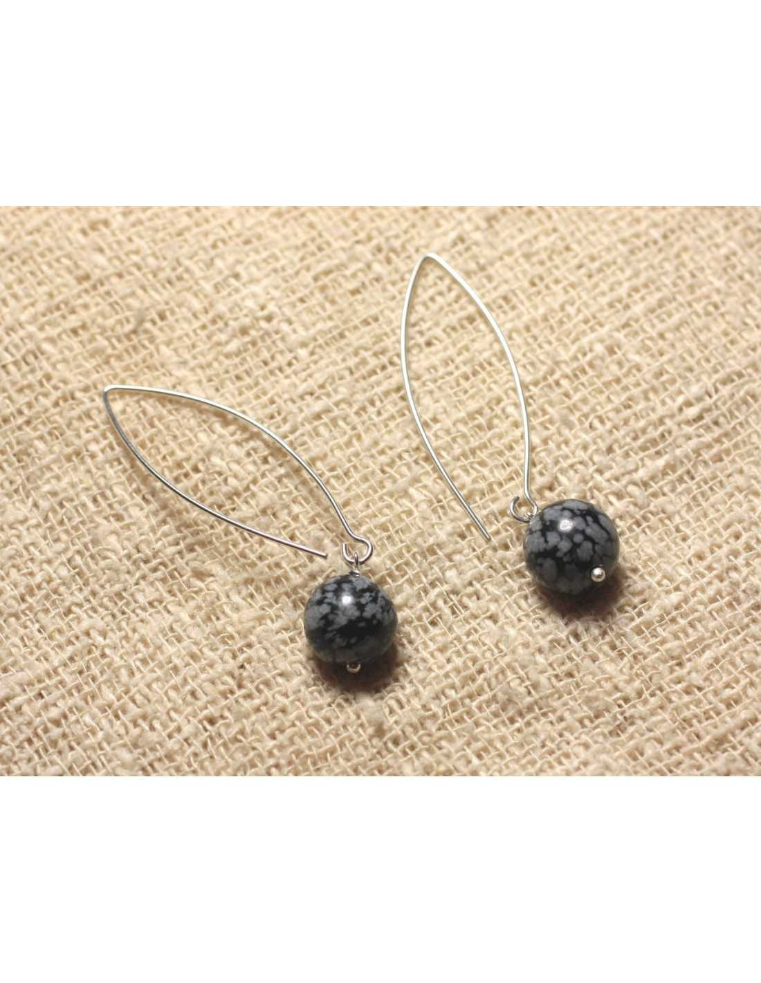 Orecchini in argento sterling 925 e pietra - Ossidiana fiocco di neve da 10 mm