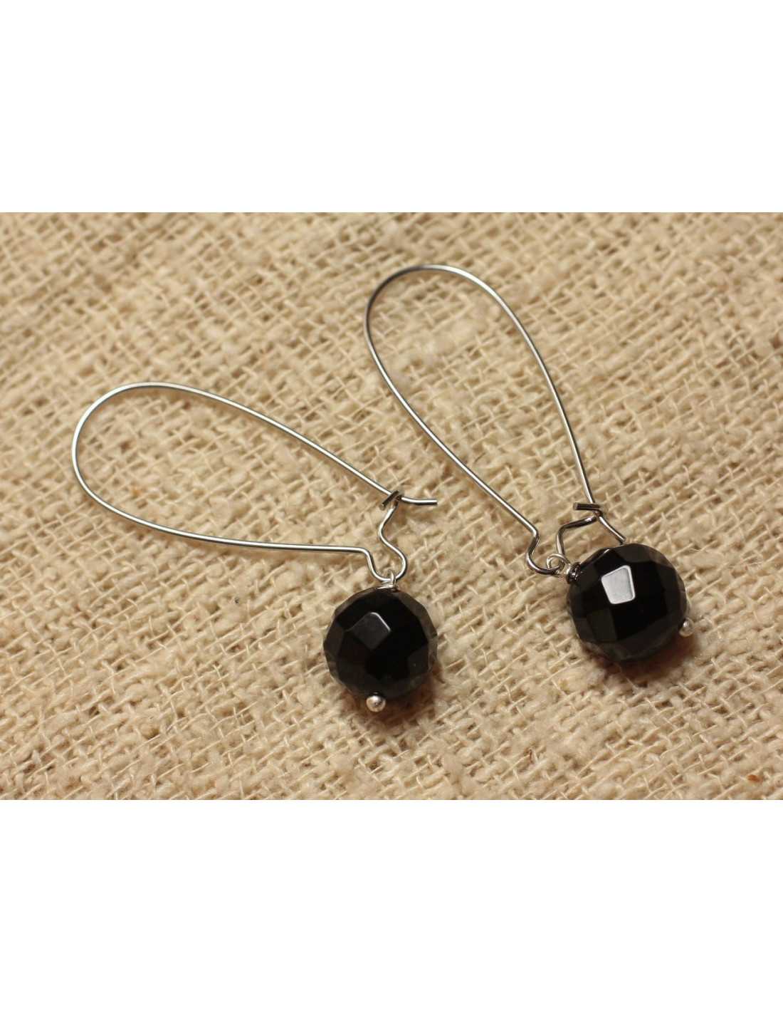 Orecchini in onice nero sfaccettato da 10 mm e lunghi ganci in argento