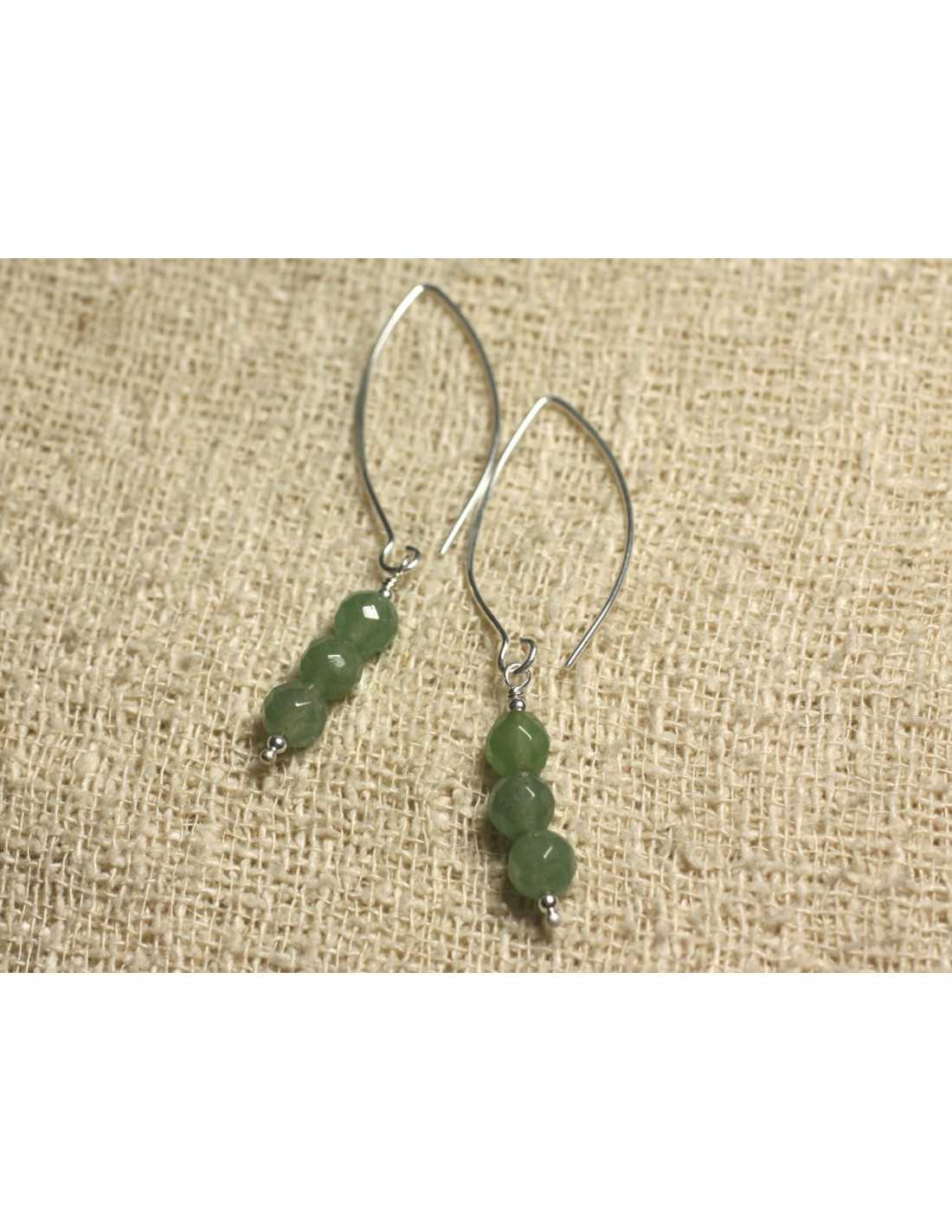 Orecchini in argento 925 con ganci da 40 mm - avventurina verde sfaccettata da 6 mm