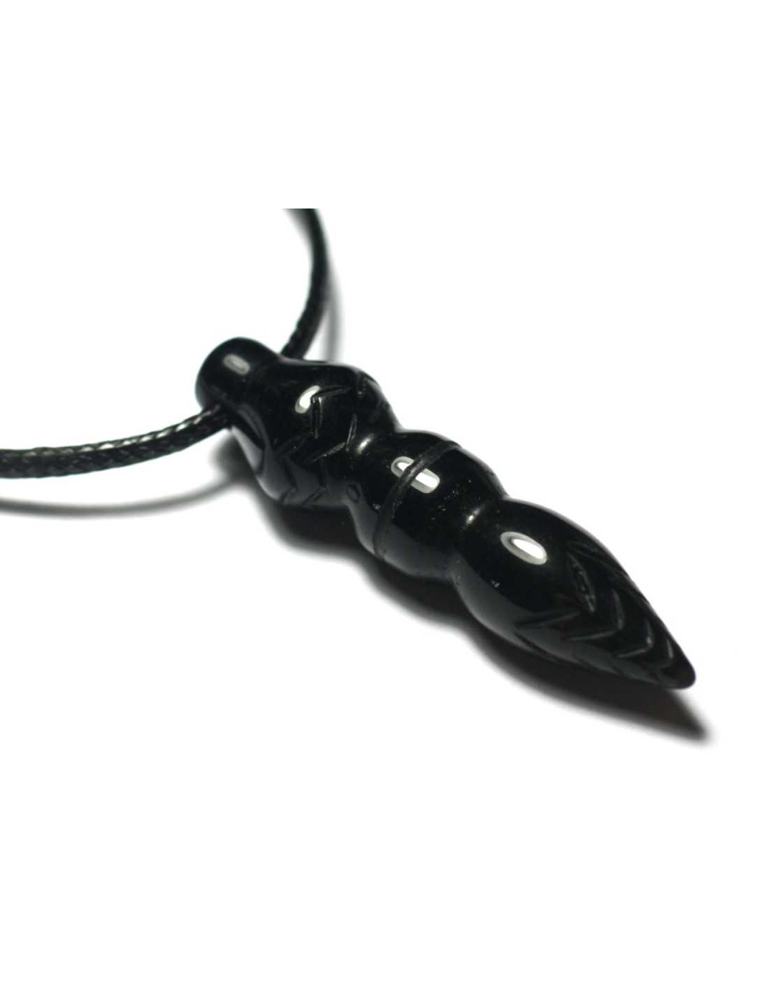 Collana con pendente pendolo Thoth egiziano inciso nella pietra - Ossidiana nera 45 mm
