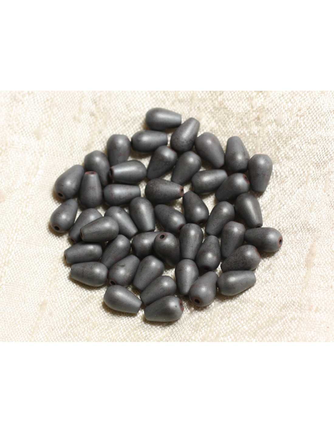 10pz - Perline di pietra - Gocce di ematite opaca 9x6mm