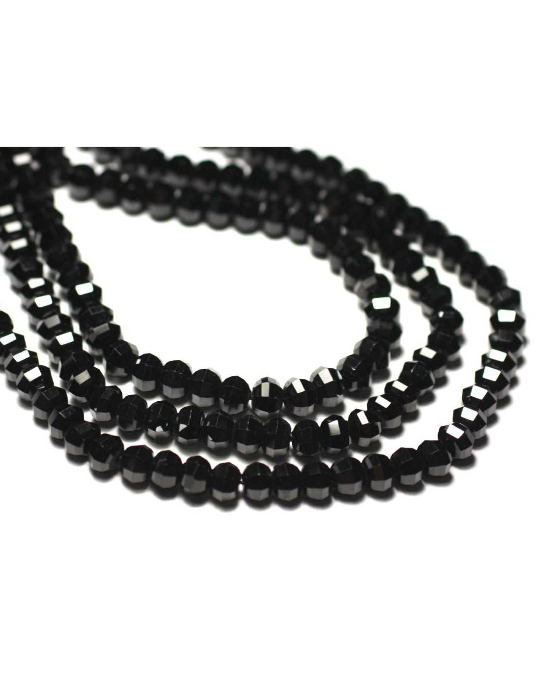 Perle di pietra spinello nero Pietra preziosa naturale Colore nero, lucido Forma rondelle sfaccettate Dimensioni Diametro 6 mm x Spessore 4 mm circa Dimensioni di foratura circa 1 mm Venduto per filo di 39 cm Circa 88 perle per filo