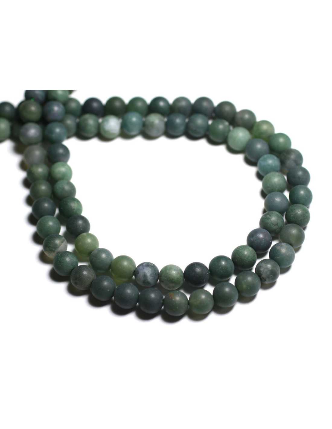 Fil 39cm 61pc env - Perles de Pierre - Agate mousse mat givré Boules 6mm