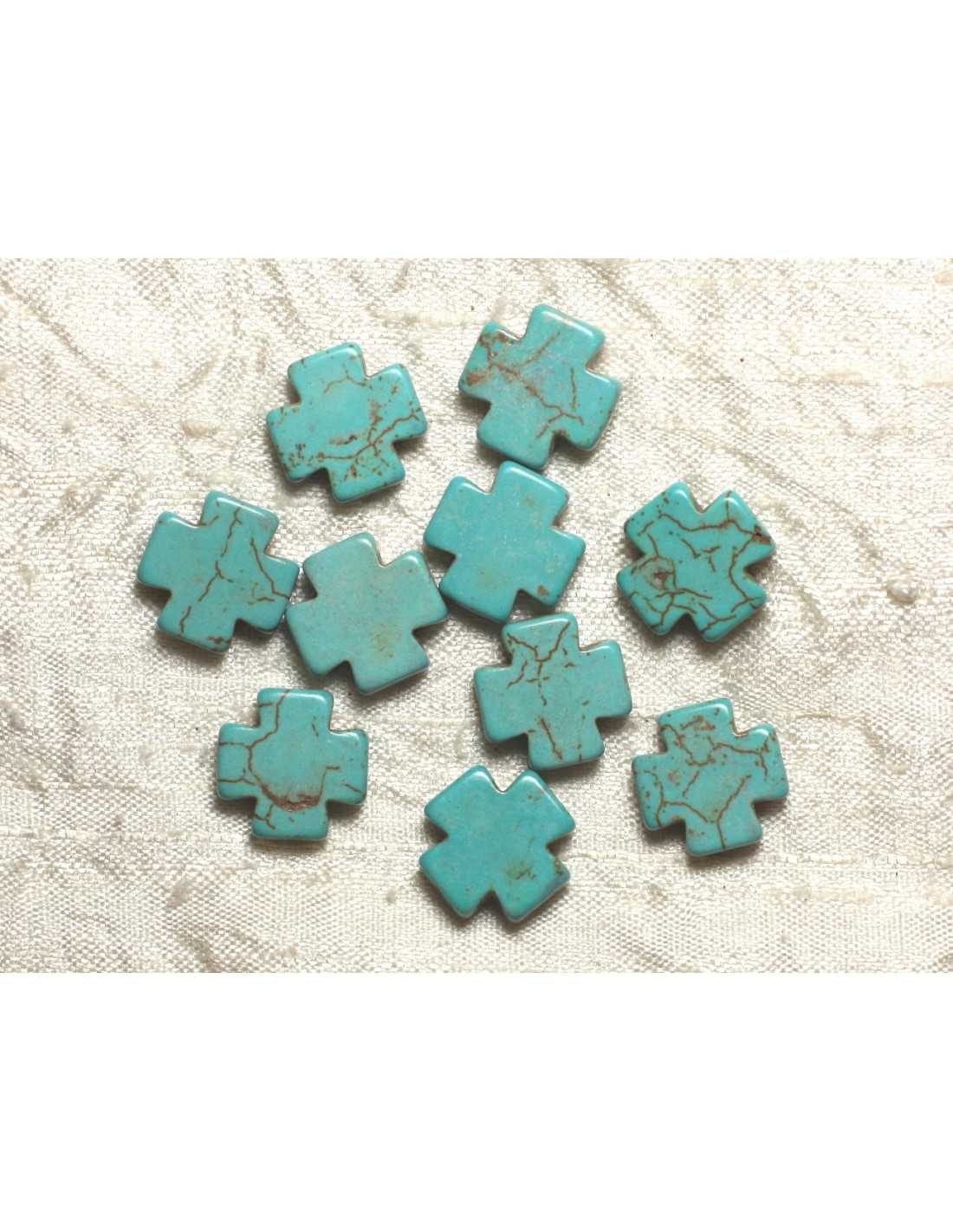 Filo 39 cm circa 25 pz - Perline di pietra turchese sintetico Croce 15 mm Blu turchese