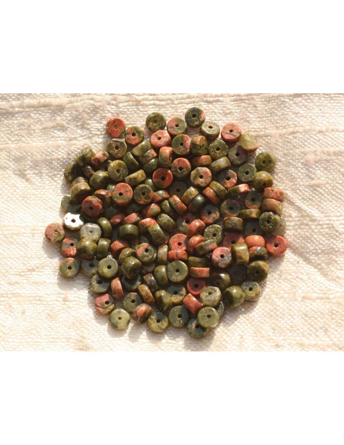 20pc - Perline di pietra - Rondelle Heishi Unakite 4x2mm 4558550015631