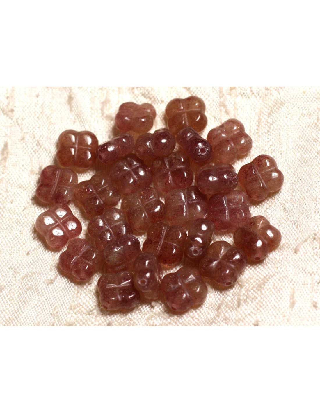 Filo 39 cm 34 pz circa - Perline di pietra - Quarzo Cherry Blossom Clover 9-11 mm