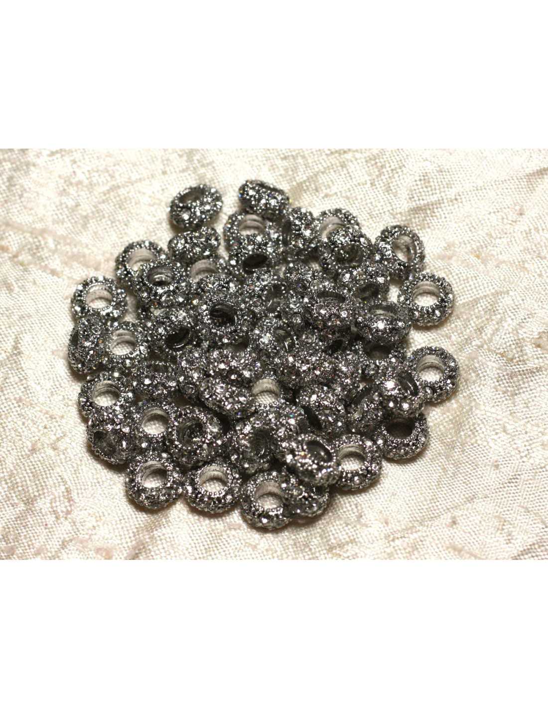 2pz - Perline tonde 11mm fori grandi - Metallo placcato argento rodiato e strass di vetro
