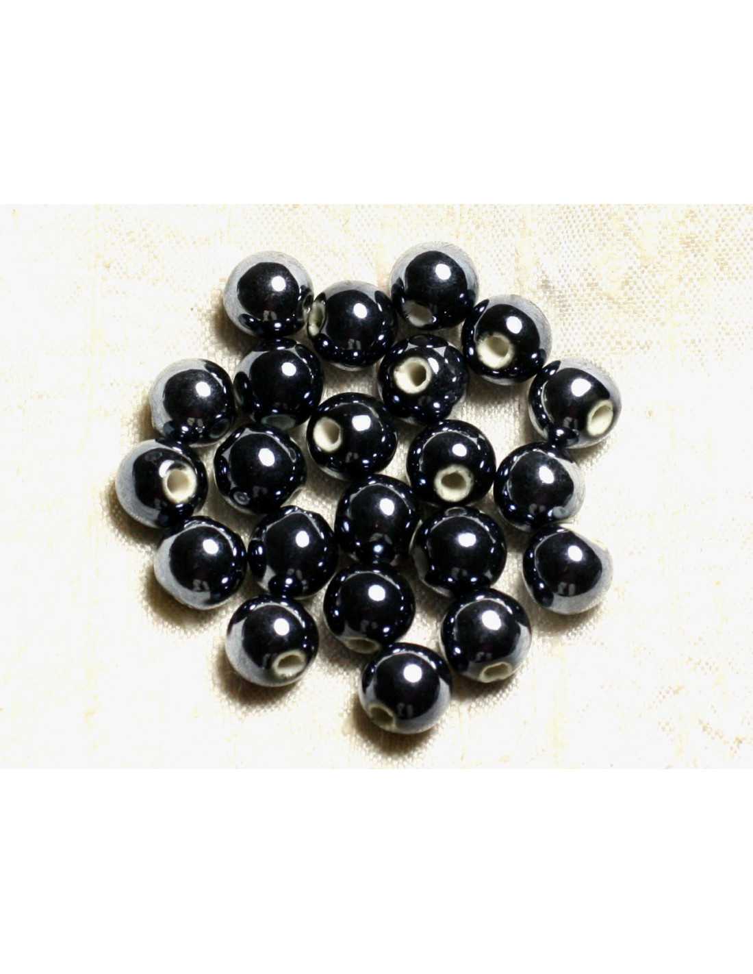 10pz - Palline di perline in porcellana ceramica nera 12mm 4558550000712