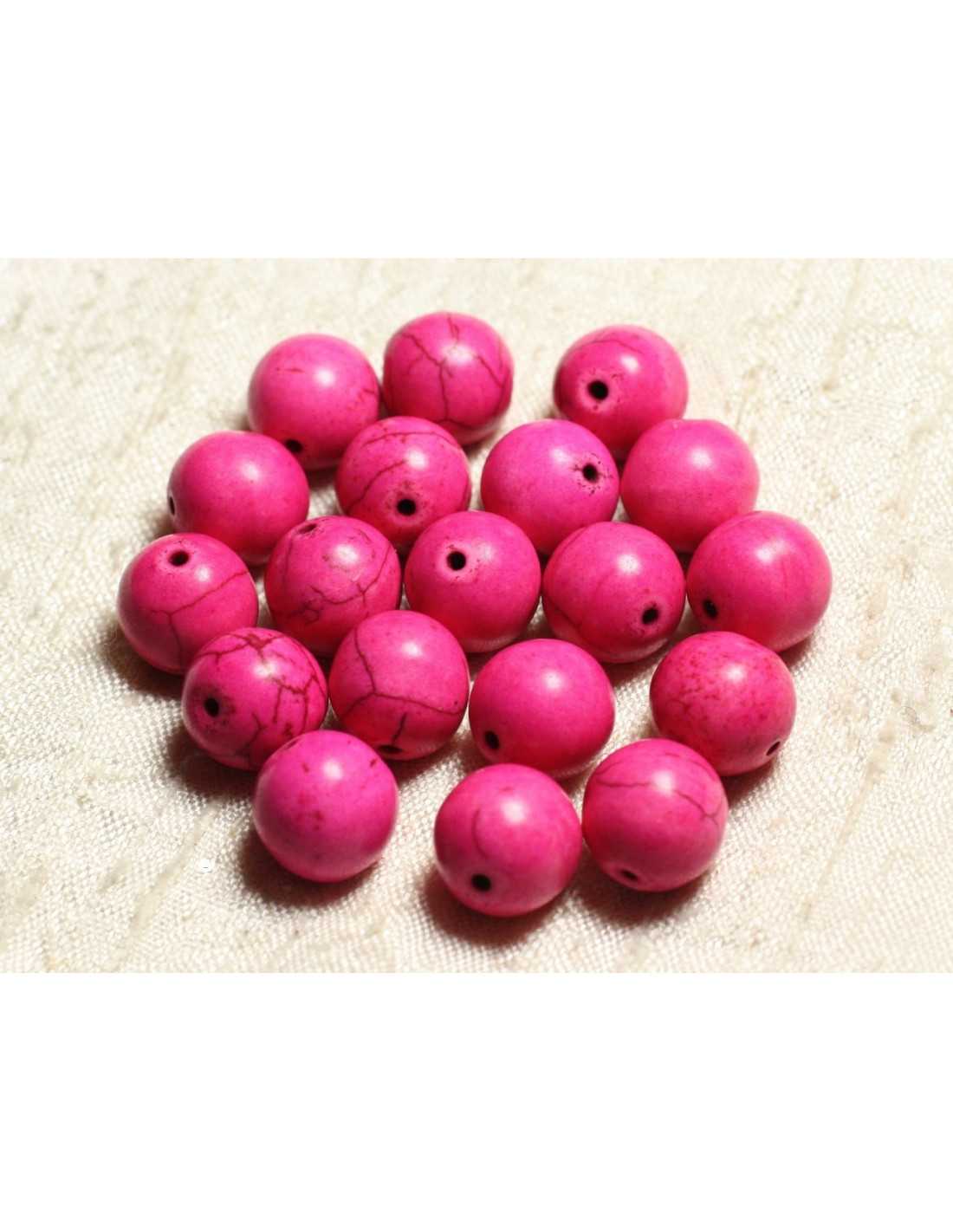 10pz - Perline sintetiche turchesi 12mm palline rosa fluo