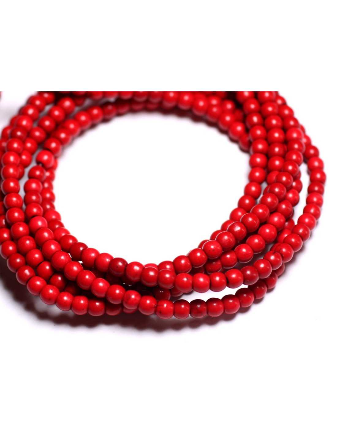 Filo 39 cm 92 pezzi circa - Palline di sintesi ricostituite perline di pietra turchese 4 mm rosse