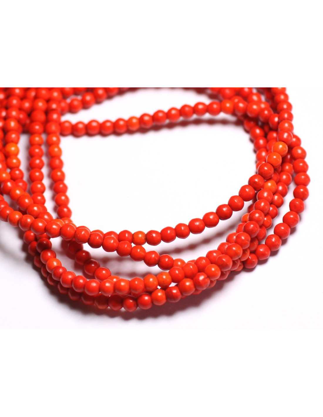 Filo 39 cm - Perline in pietra turchese Sintesi ricostituita Sfere da 4 mm Pietra sintetica Colore Arancione Forma a sfera, rotonda Dimensioni circa 4 mm Dimensione foratura circa 0,8 mm Venduto con filo da 39 cm Circa 92 perle per filo