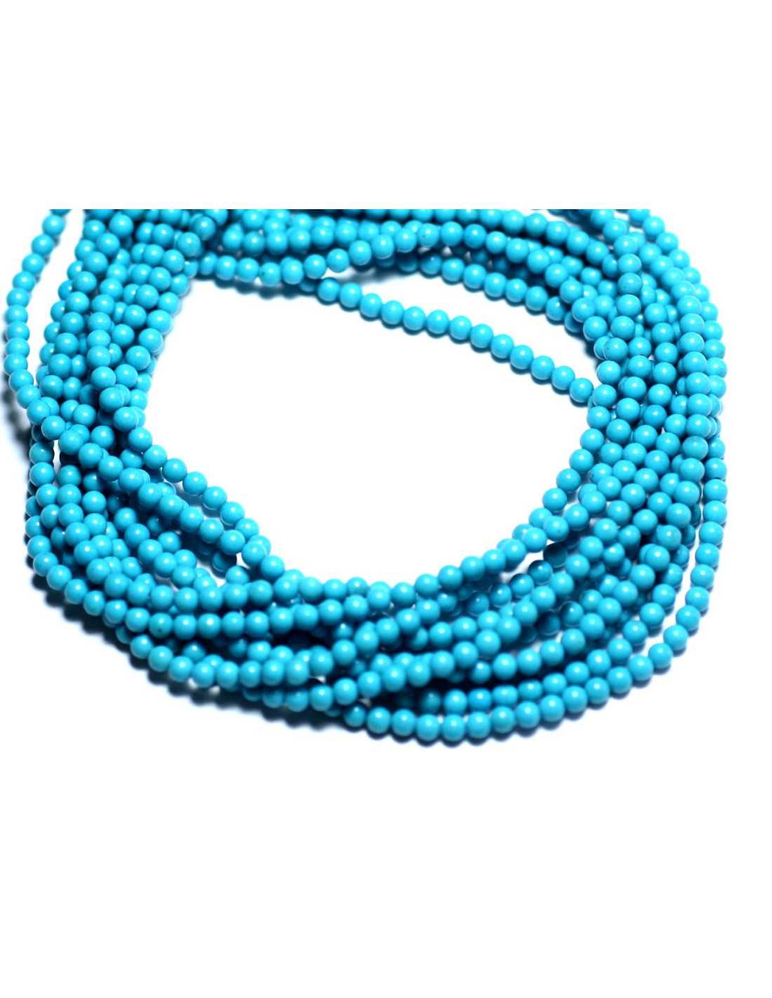 Filo 39 cm - Perline di pietra turchese Sintesi ricostituita Pietra sintetica Colore Blu Turchese Azzurro Sfere di forma, rotonde Dimensioni circa 2 mm Dimensione di foratura circa 0,8 mm Venduto con filo da 39 cm Circa 180 perline per filo