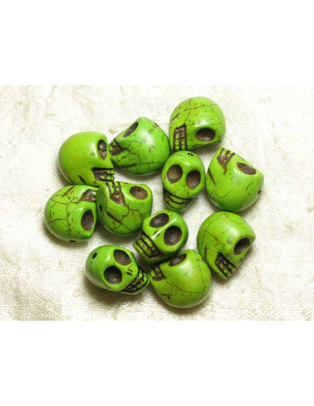 Filo 39 cm - Perline di pietra turchese Ricostituito Teschi di sintesi teschio 18x14mm Pietra sintetica Colore Verde Forma Teschi, teschio, forato dall'alto verso il basso Dimensioni Lunghezza 18 mm x Larghezza spessore 14 mm circa Dimensione foratura 1 mm circa Venduto da filo di 39 cm Circa 21 perle per filo