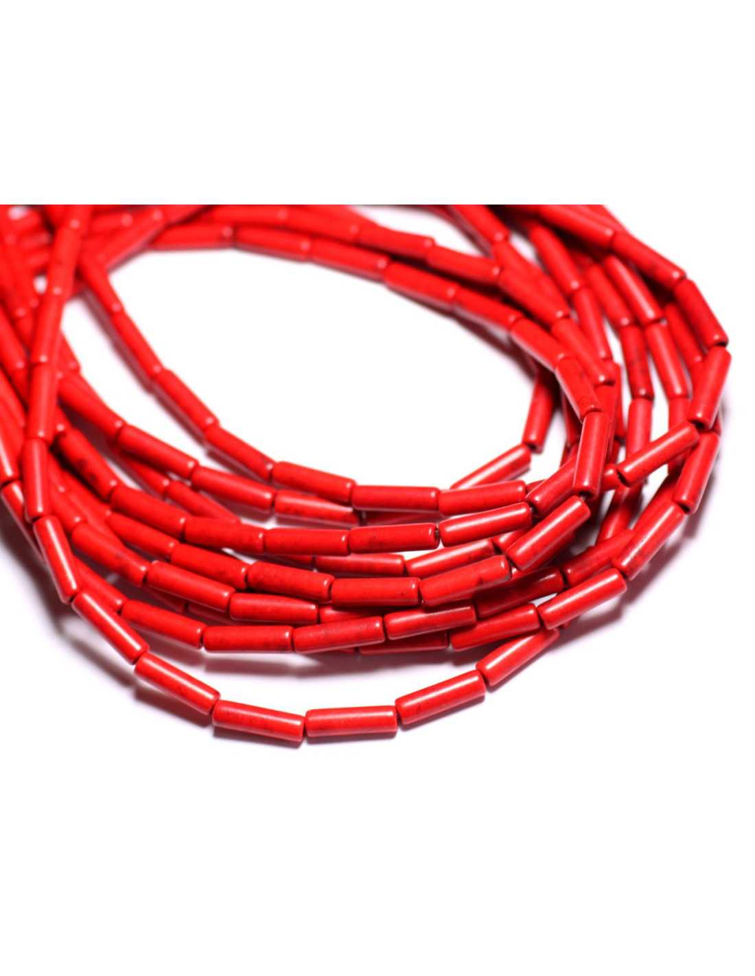 20pc - Tubi di perle sintetiche turchesi 13x4mm rossi