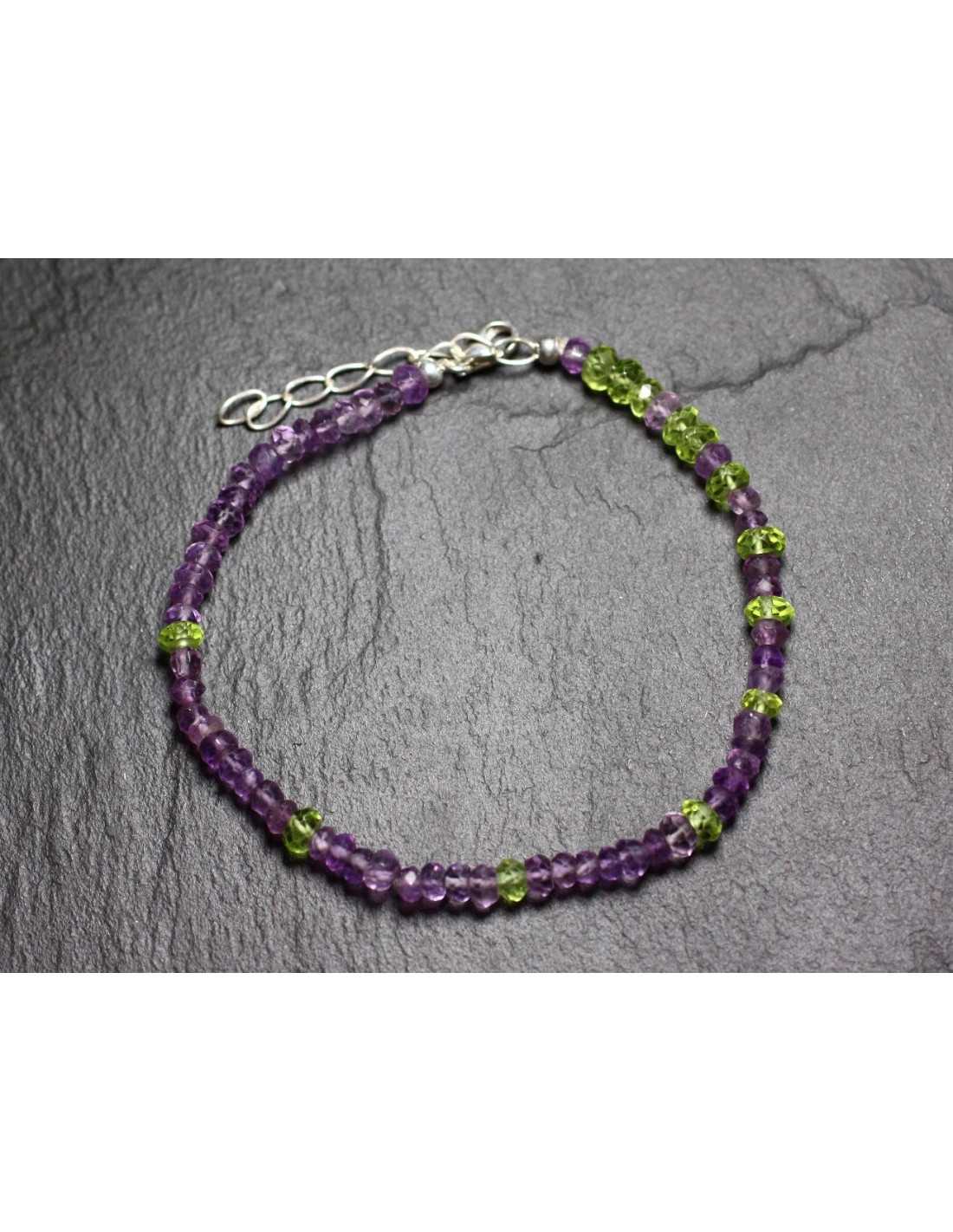 Bracciale Argento 925 e Pietre - Rondelle Sfaccettate Ametista e Peridoto 3-5mm
