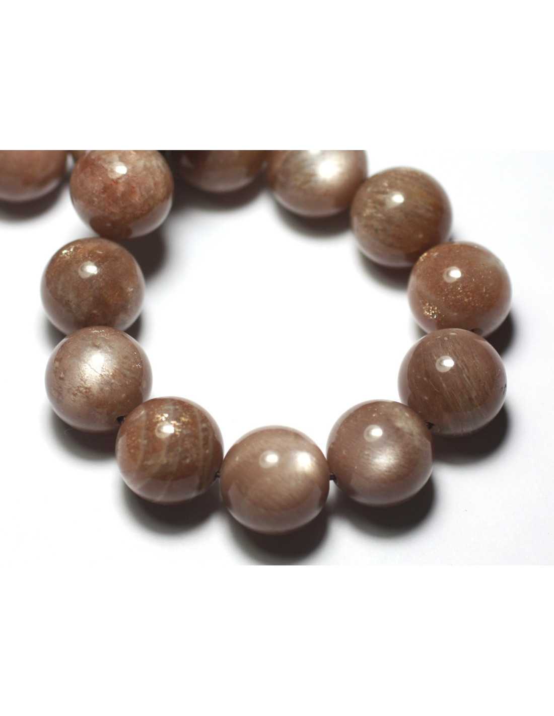1st - Stenen kraal - Maansteen grijs roze bal 14 mm - 8741140028876