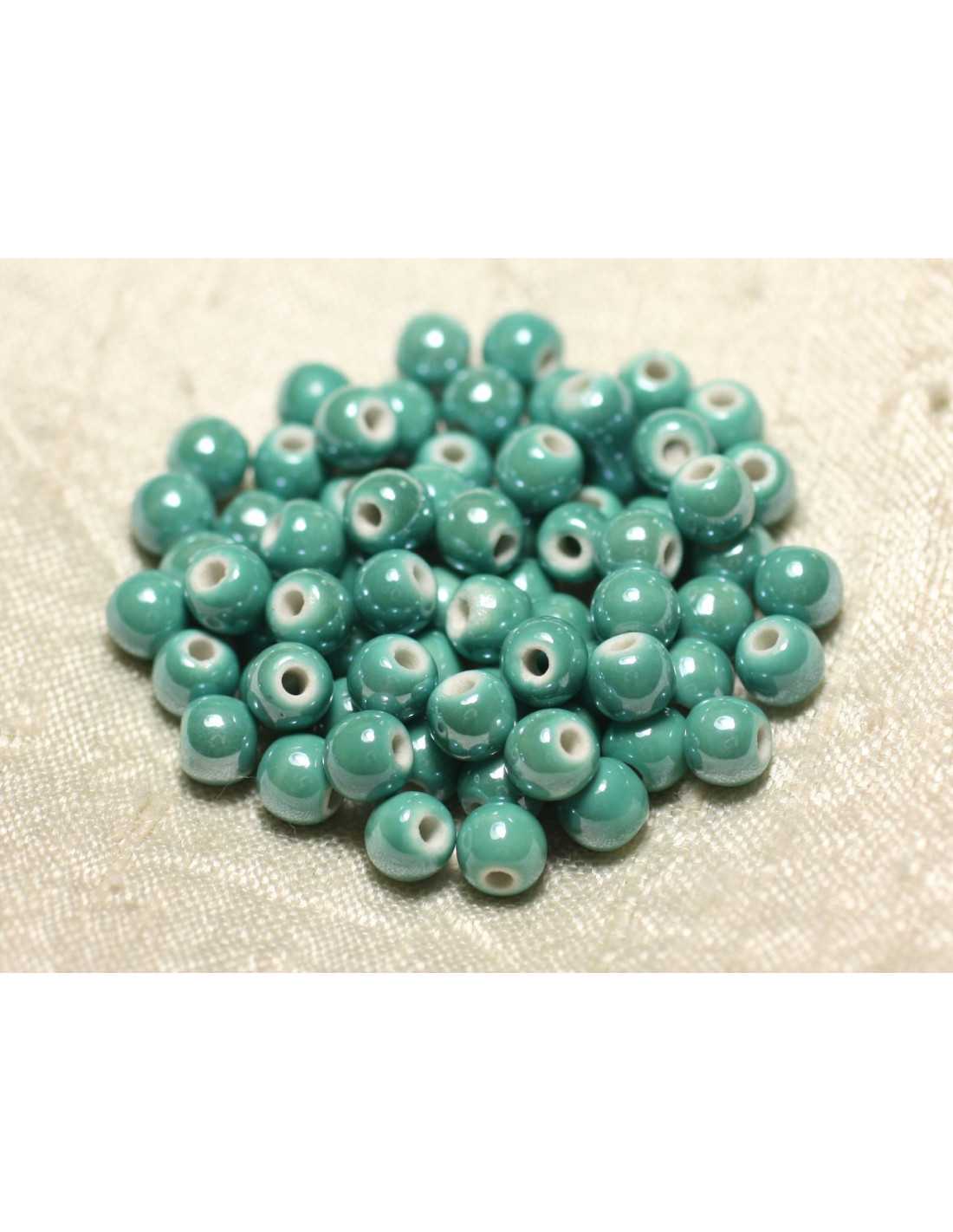 Keramiek porseleinen kralen 6 mm ballen Kleur groen Turkoois iriserend Bolvorm, rond Afmeting ongeveer 6 mm Boorafmeting ongeveer 1,5 mm Verkocht in zakjes van 100 kralen Verkrijgbaar in andere maten en kleuren