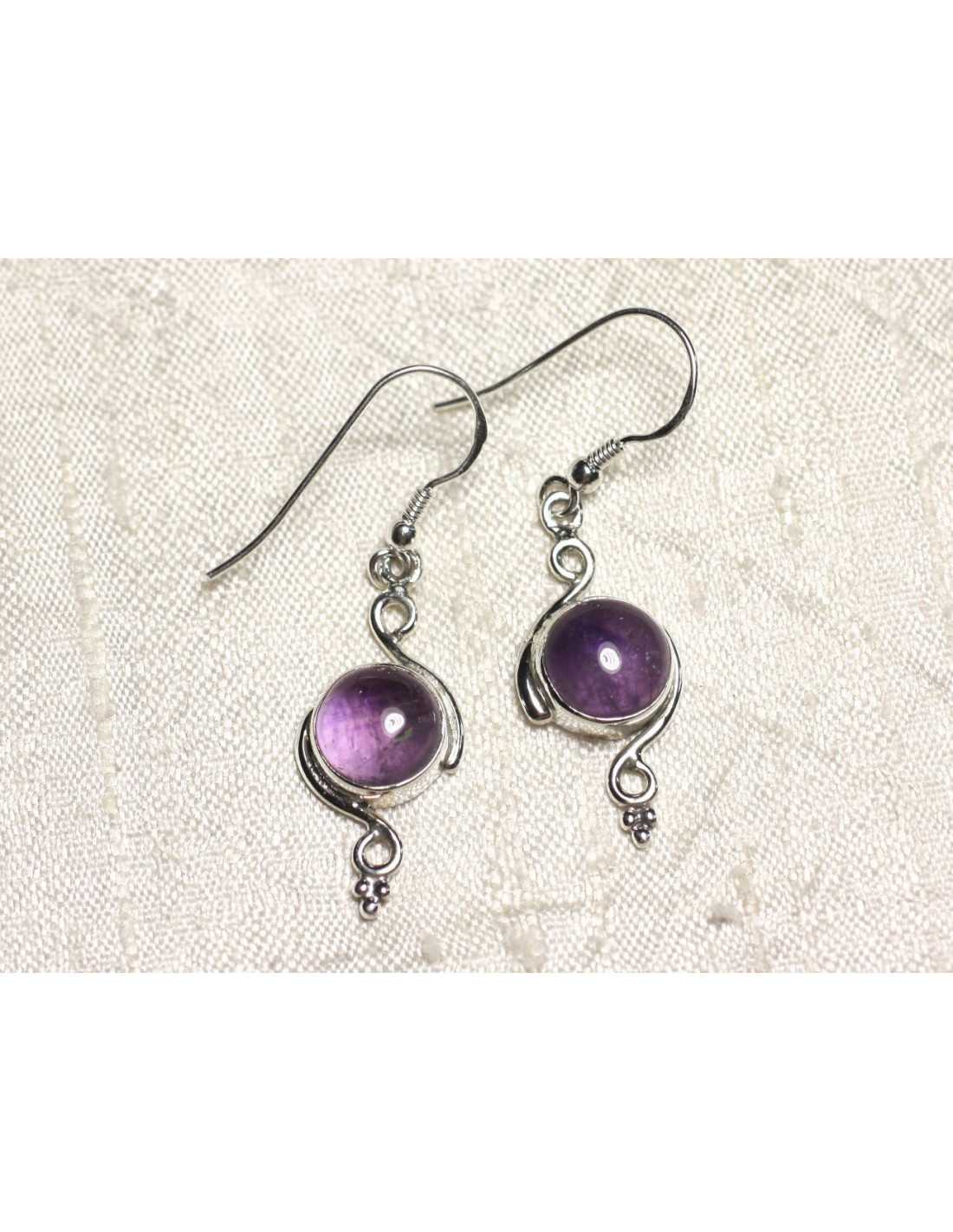 BO213 - 925 zilveren oorbellen en Amethist stenen ronde spiralen 30 mm